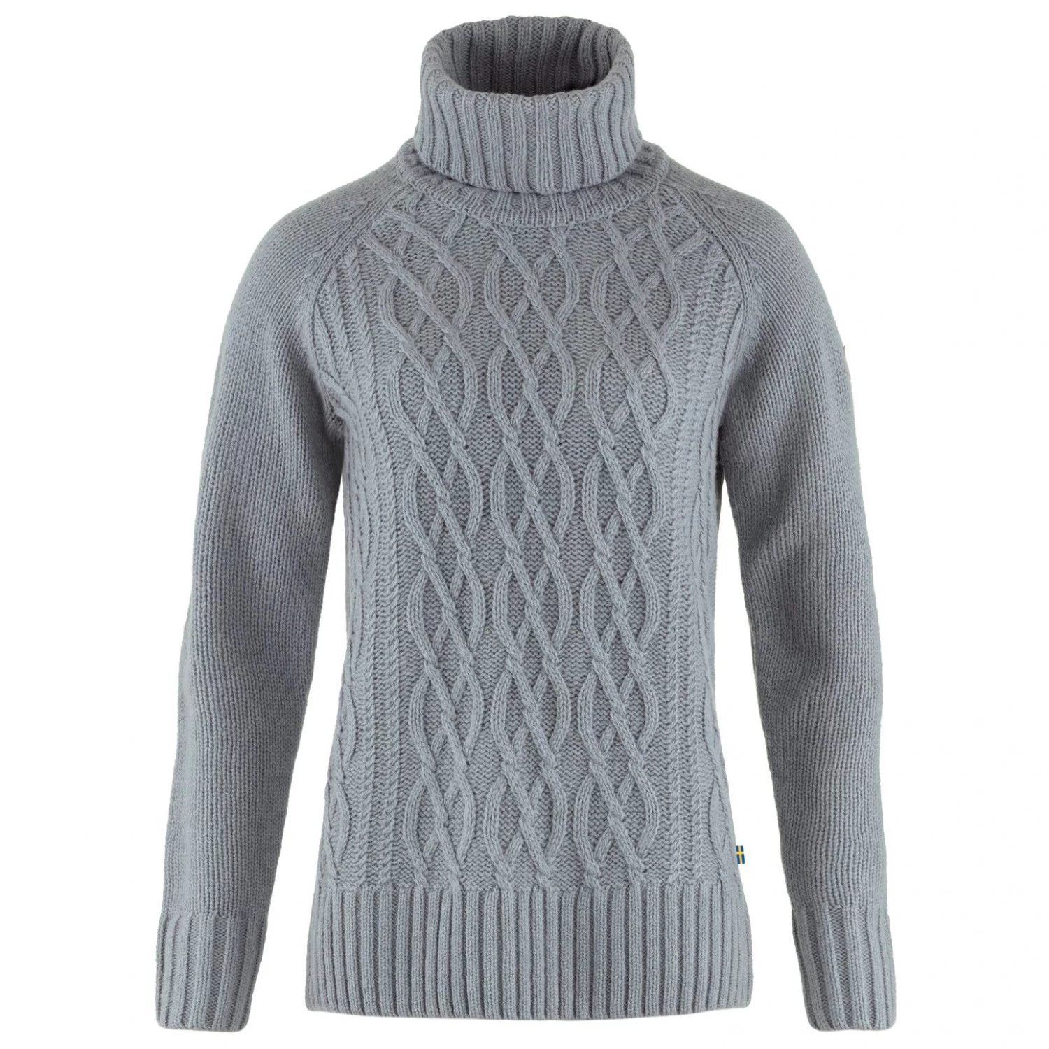 The Women’s Övik Cable Knit Roller Neck wool jumper from Fjällräven not only looks cosy, but also nestles comfortably against your skin with its soft fabric. When it’s stormy and snowing outside, this beautiful and warm knitted jumper, with a classic cable knit pattern on its front, invites you to snuggle up on the sofa at home. Made from high-quality wool, the jumper is a perfect mid-layer for chilly autumn or winter outings, both in the countryside and in the city.