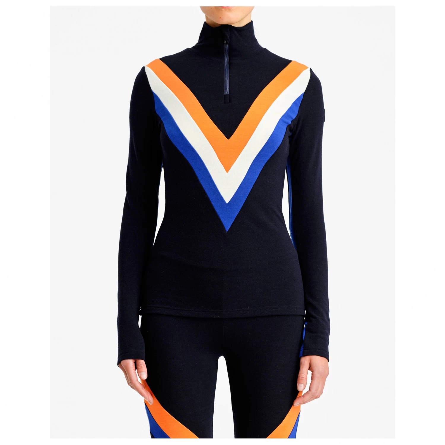 Athletic, fashionable and a bit retro – that’s the Women’s Voss Chevron Zip Up from We Norwegians. This jumper is perfectly suitable for colder days and can be worn for a wide variety of outdoor activities. Thanks to its slightly fitted cut, it always sits well and won’t hinder your movement. In addition, its material feels very pleasant, even directly against your skin. The stand-up collar with a half-length zip is also practical, reliably protecting your neck and throat from draughts and the cold.